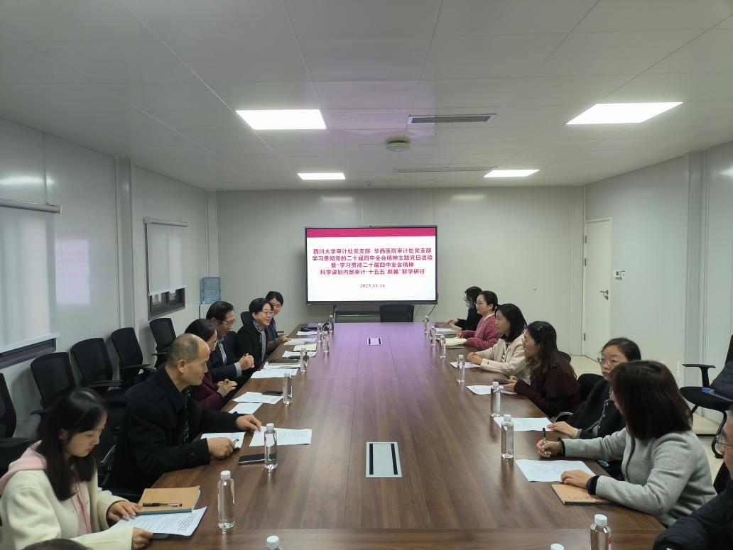 为深入学习贯彻党的二十届四中全会精神,加强学校与附属医院审计部门的协同联动,2025年11月14日上午,2138CC太阳集团与华西医院审计处党支部以“深入学习贯彻党的二十届四中全会精神,科学谋划内部审计‘十五五’新篇”为主题开展了联学活动,并就“十五五”内部审计发展规划进行了专题研讨。
