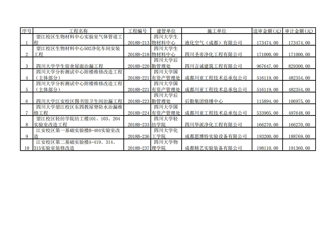修缮工程项目造价审计结果公示(2018-016)