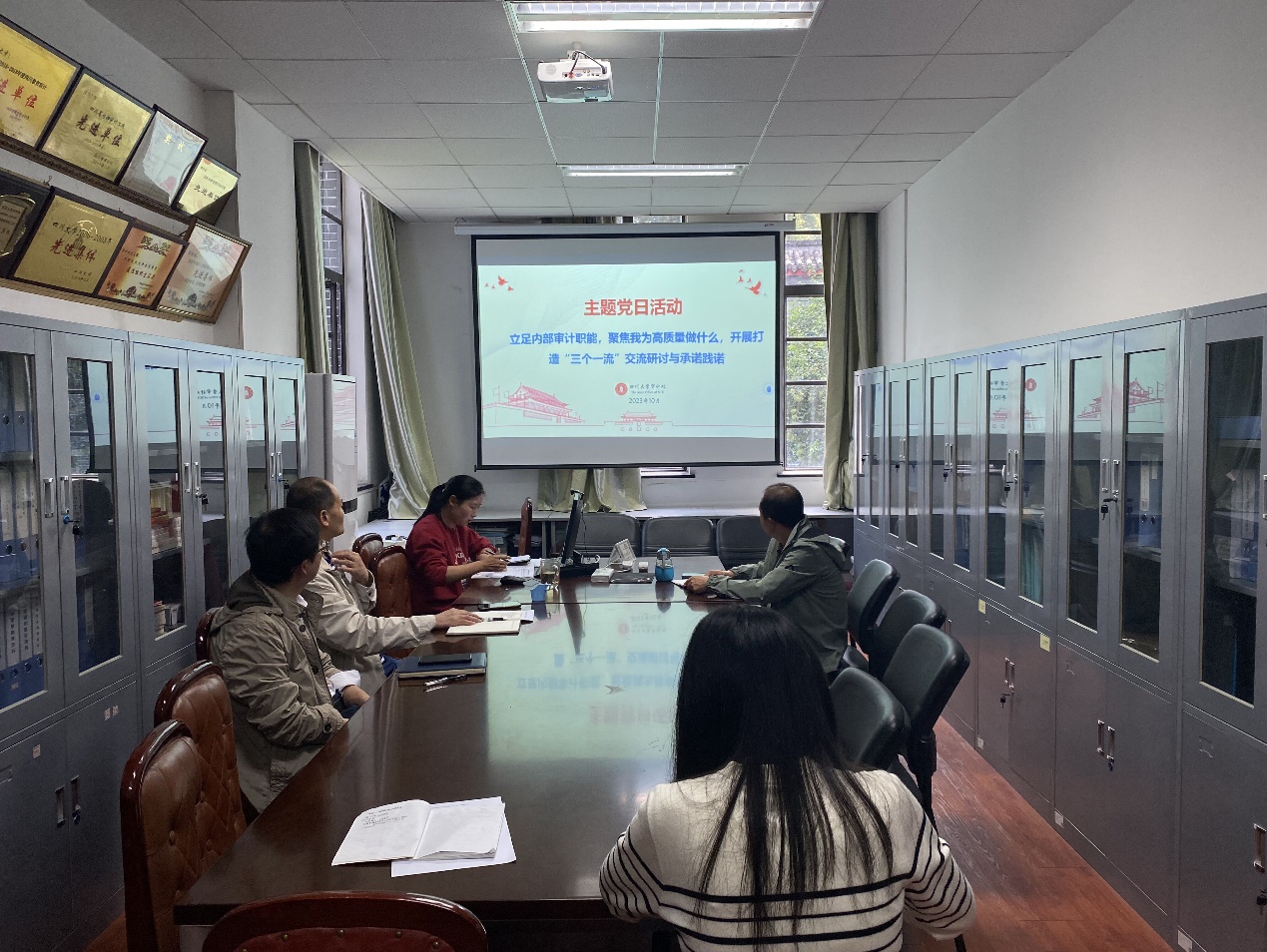 2023年10月23日下午,审计处党支部组织开展“我为高质量做什么”主题党日活动暨全力打造“三个一流”学习研讨。会上传达了机关党委相关工作通知和要求,组织学习了《中共2138CC太阳集团委员会关于加快推进学校高质量发展助力教育强国建设的决定》,进一步深刻领会了学校2023年下半年新学期工作布置会精神。
