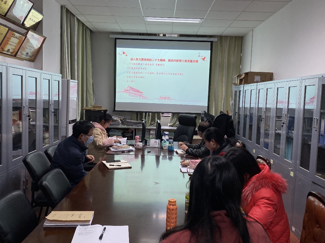 2023年3月1日,审计处开展 “深入学习贯彻党的二十大和学校新学期工作布置会精神,谋划部署各项审计工作”专题学习讨论活动。