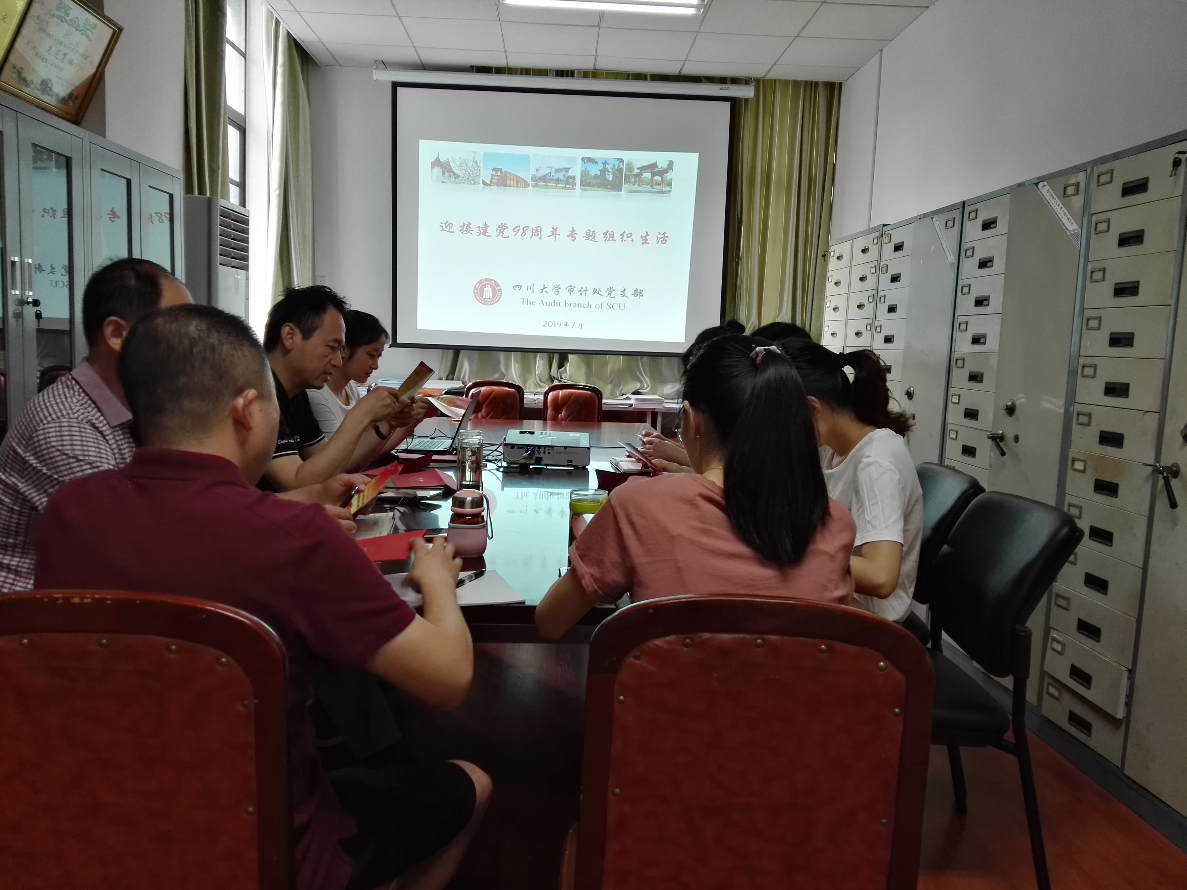 2019年7月1日上午9点,在中国共产党98周年生日之际,审计处党支部召开党员大会,开展“迎接建党98周年专题组织生活”。