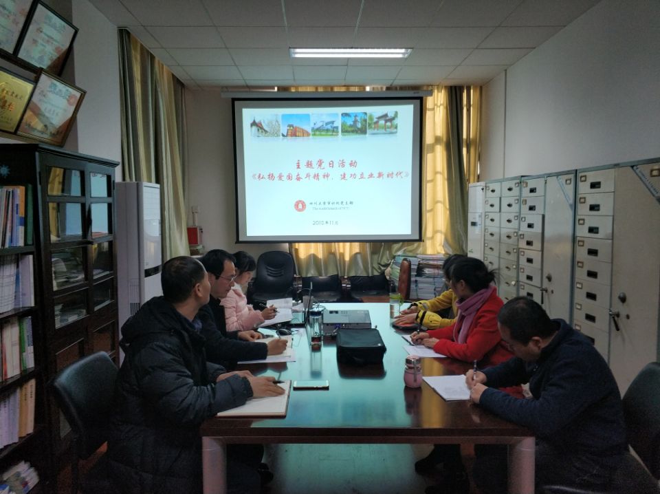 本次主题当日活动主要分为三个阶段;首先,学习了《关于在广大师生中深入开展“弘扬爱国奋斗精神、建功立业新时代”活动的实施方案》(川大委[2018]68号)文件精神,对活动的目的、活动的内容与形式、活动的工作要求等进行明确;随后,组织观看了《西安交大“西迁人”:爱国没有选择项,奋斗永远进行时》的视频资料,从新时代优秀知识分子的感人事迹和爱国情怀领会“爱国奋斗”精神的内涵和真谛;最后,支部书记带头发表学习感言,表示学习了老一辈知识分子的事迹深受触动,认为“审计人”应将“西迁人”的爱国情怀和奋斗精神踏踏实实地贯彻到业务工作中,将奋斗精神传承下去;其他党员也结合自身工作和学习经历分享体会,表示在自身弘扬“爱国奋斗”精神的同时,也要感染科室的群众,共同为学校“两个伟大”事业作出应有的贡献。